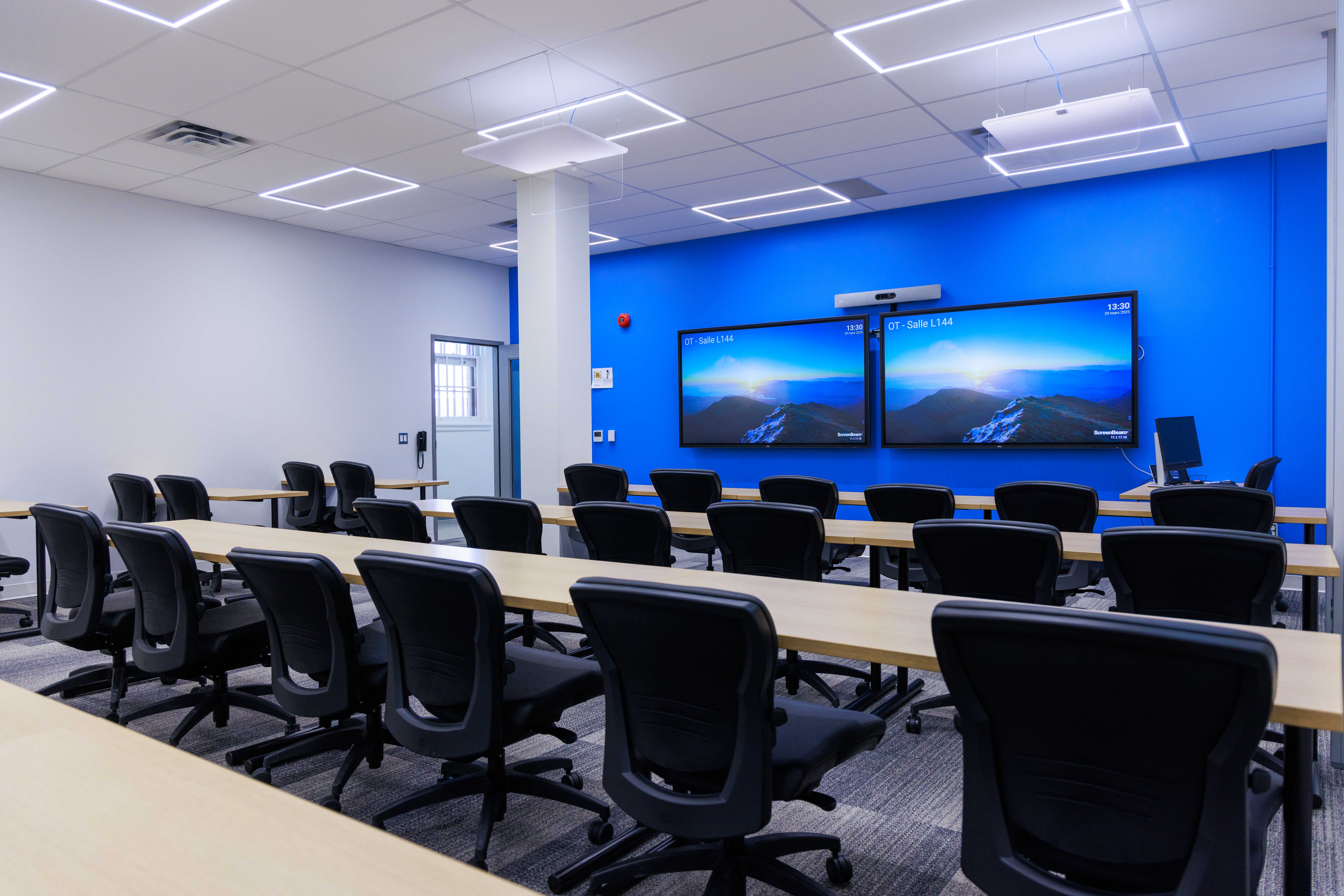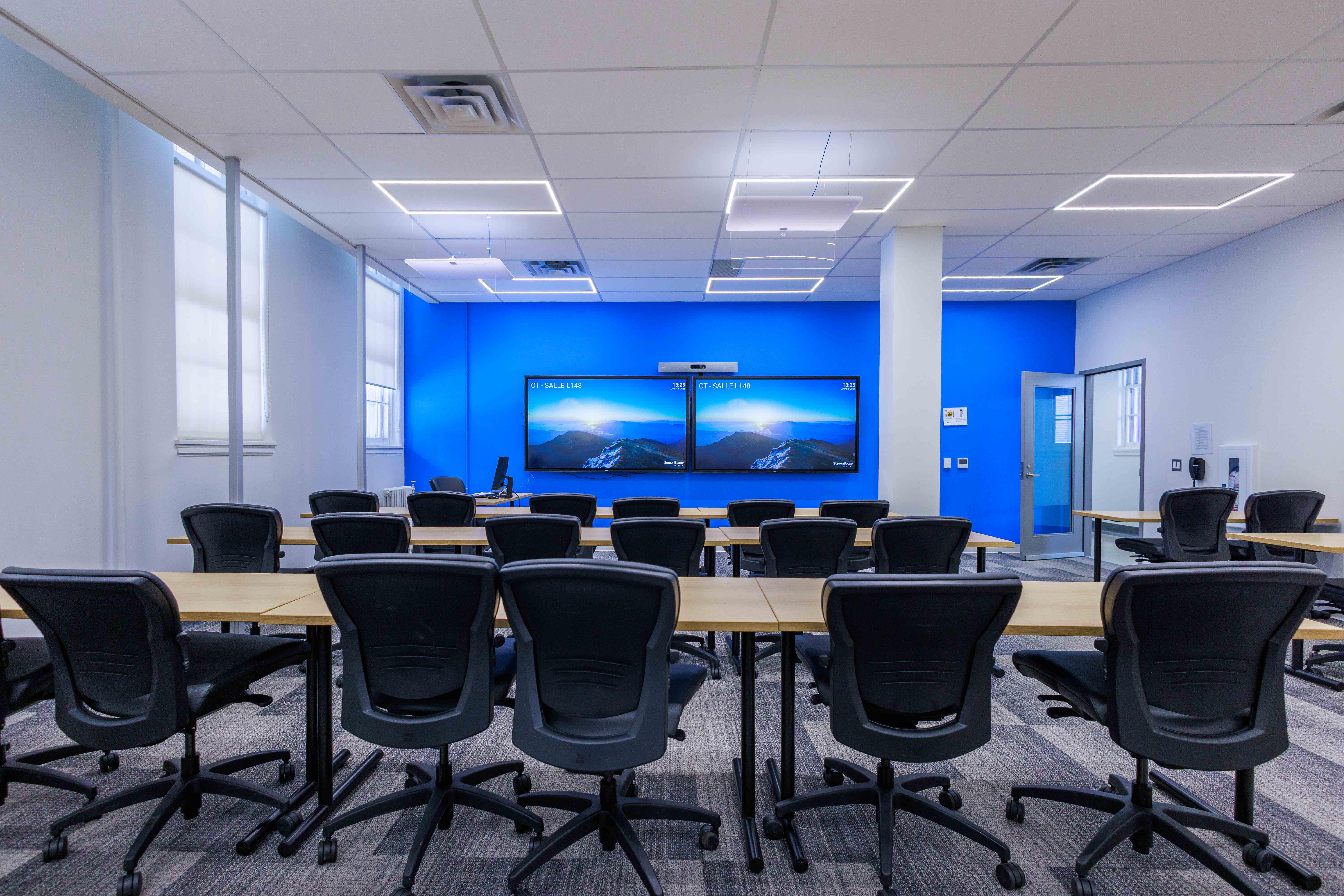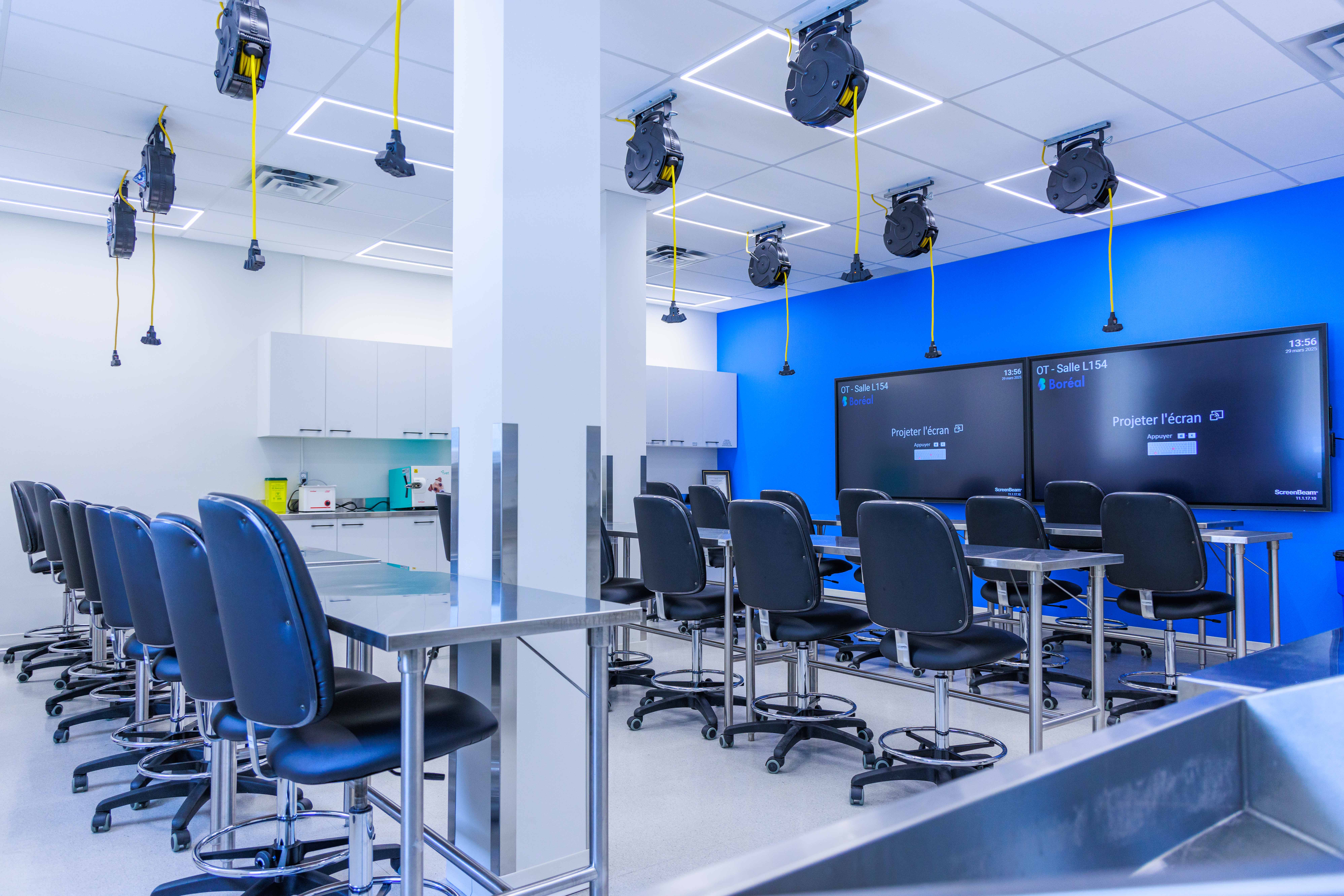 Inside, the space includes a well-considered mix of classrooms, science labs, offices, and shared student amenities, including a bright and welcoming lounge. The result is a learning environment that respects the building’s past while meeting the evolving needs of Collège Boréal’s students and faculty.
