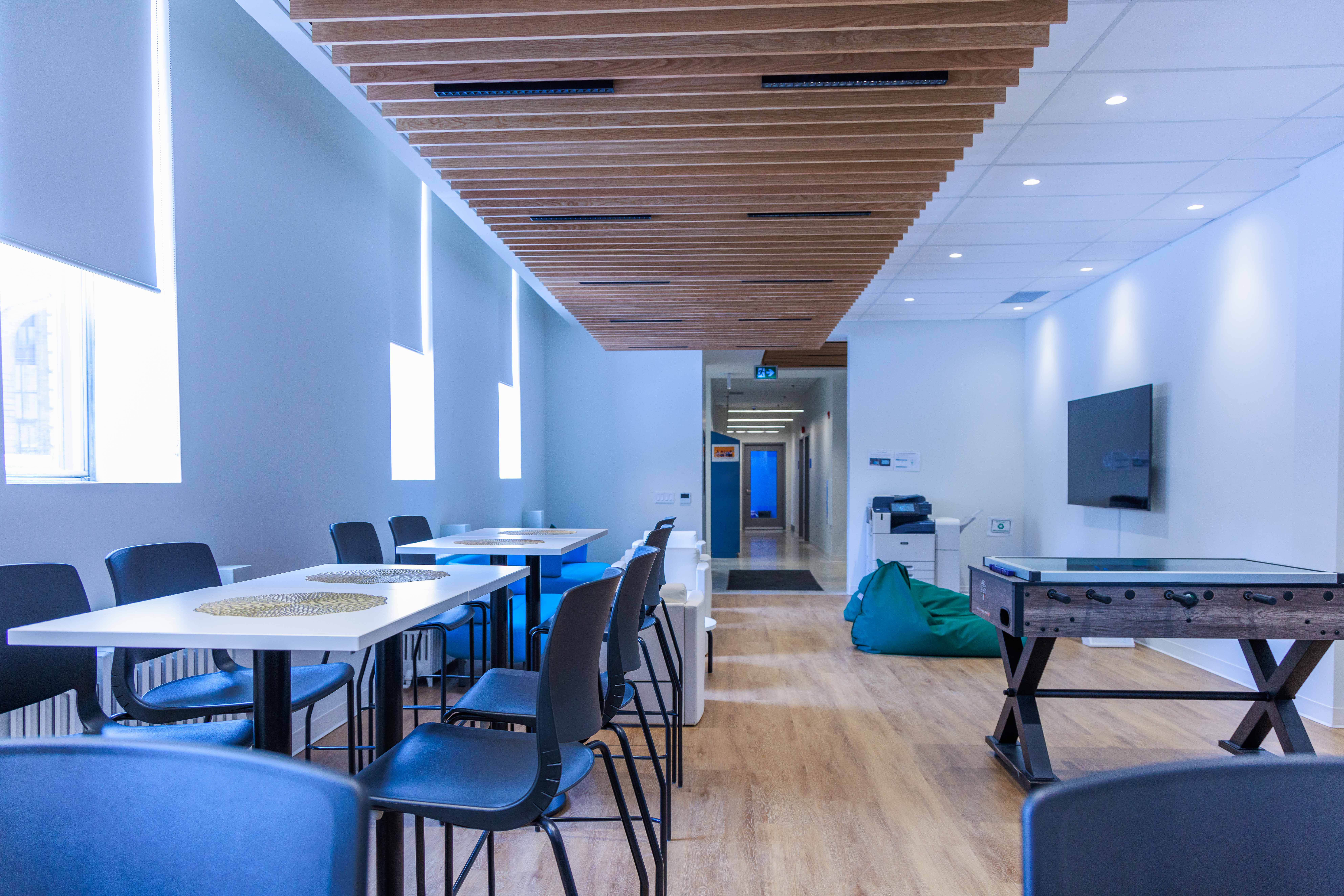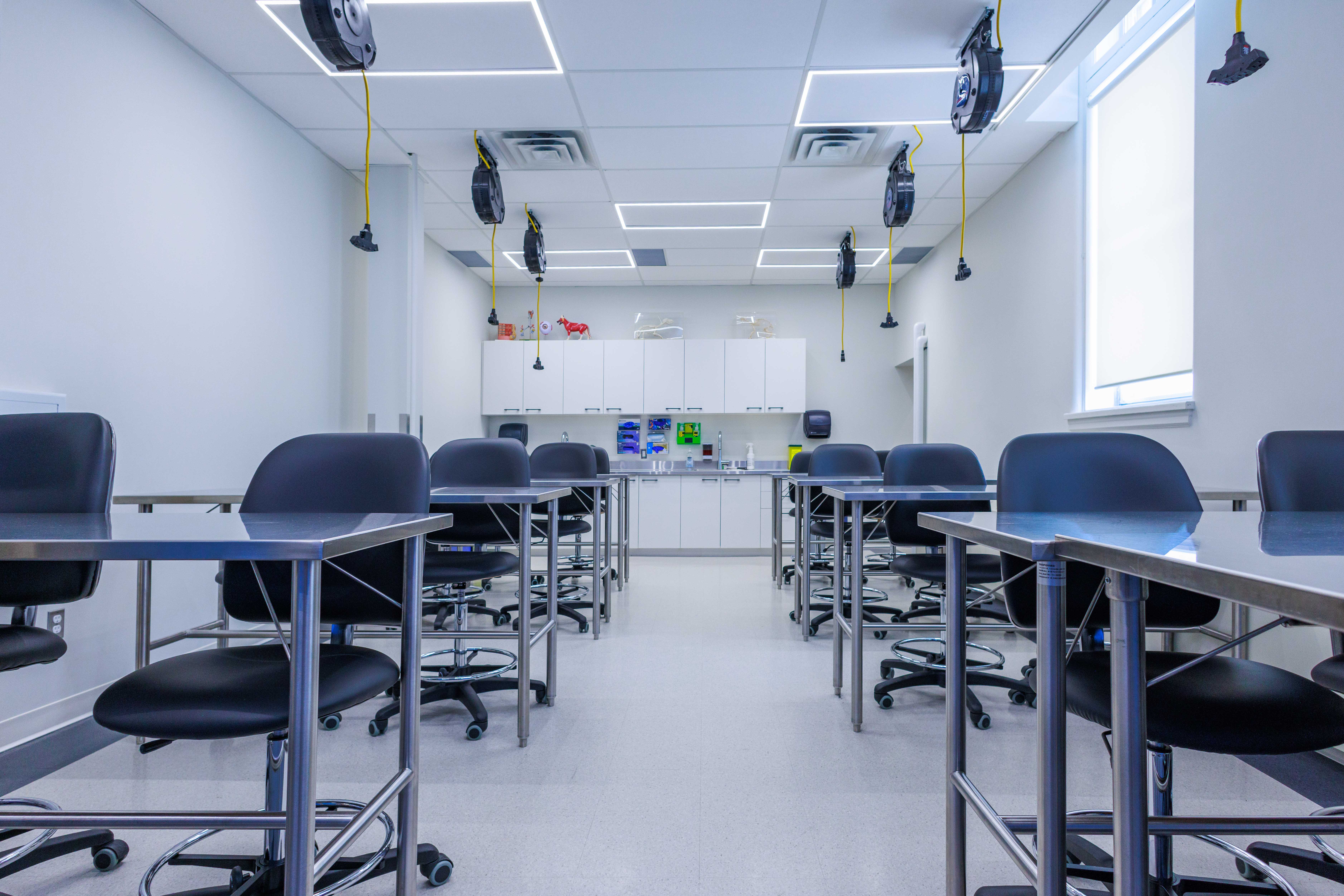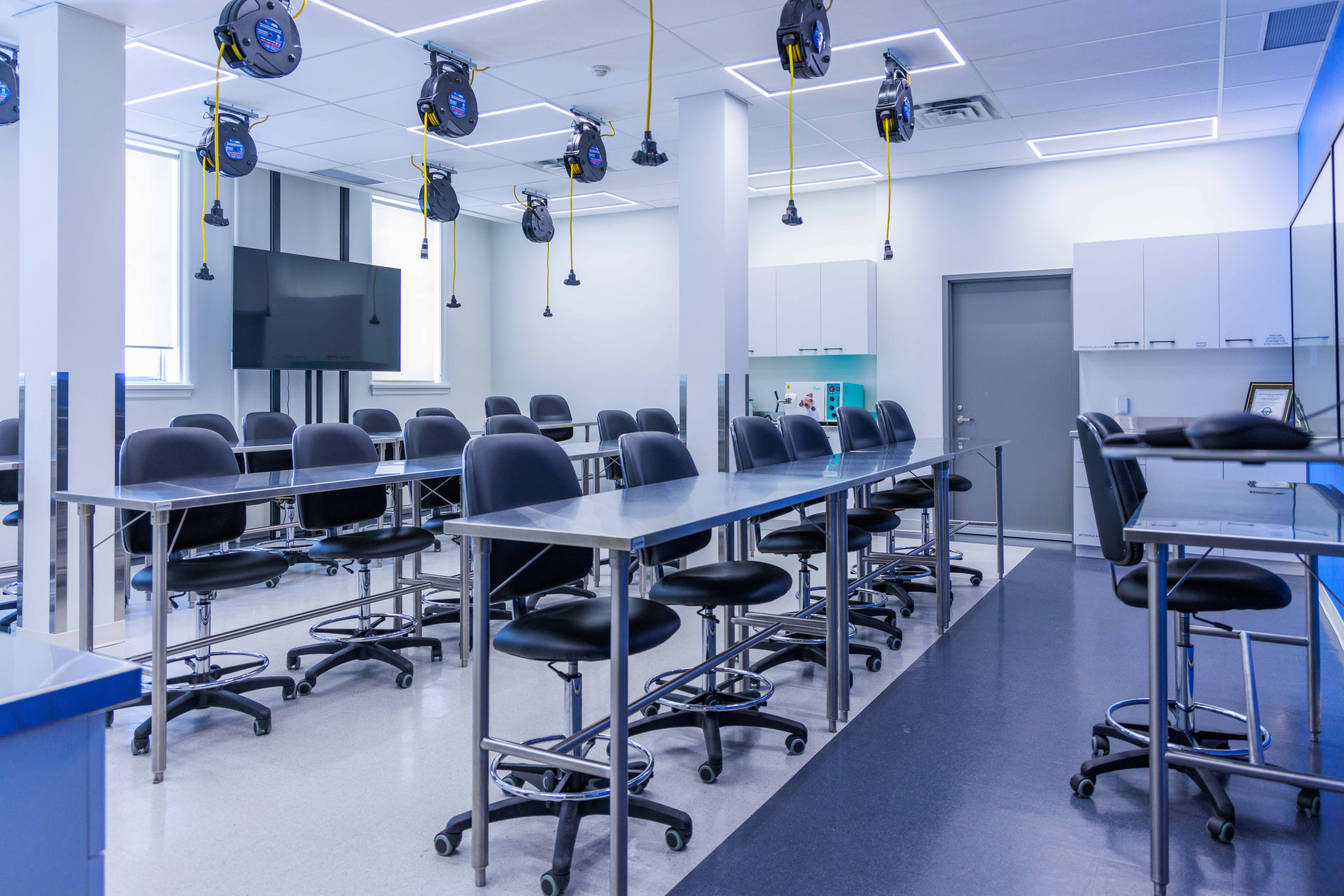Inside, the space includes a well-considered mix of classrooms, science labs, offices, and shared student amenities, including a bright and welcoming lounge. The result is a learning environment that respects the building’s past while meeting the evolving needs of Collège Boréal’s students and faculty.